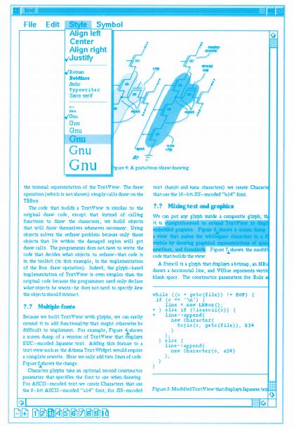 MVC的另一个特征是视图可以嵌套。例如,按钮控制面板可以用一个嵌套了按钮的复杂视图来实现。对象查看器的用户界面可由嵌套的视图构成,这些视图又可复用于调试器。MVC用View类的子类——CompositeView类来支持嵌套视图。CompositeView类的对象行为类似于View类的对象行为,一个组合视图可用于任何视图可用的地方,但是它包含并管理嵌套视图。