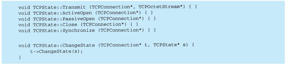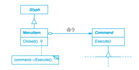 View-Controller关系是Strategy(5.9)模式的一个例子。一个策略是一个表述算法的对象。当你想静态或动态地替换一个算法,或你有很多不同的算法,或算法中包含你想封装的复杂数据结构时,策略模式是非常有用的。