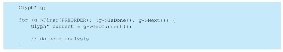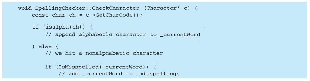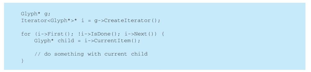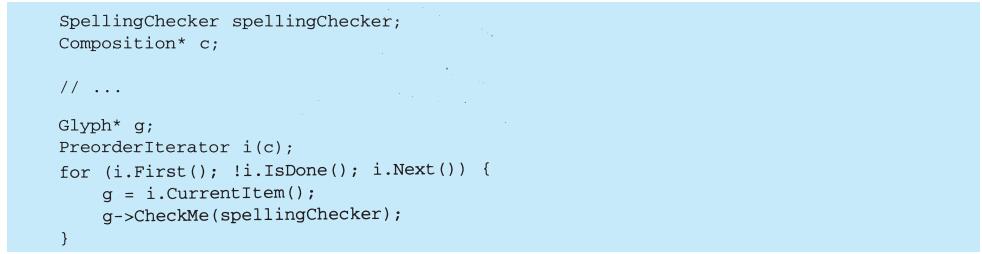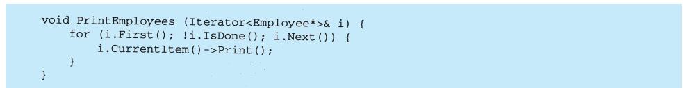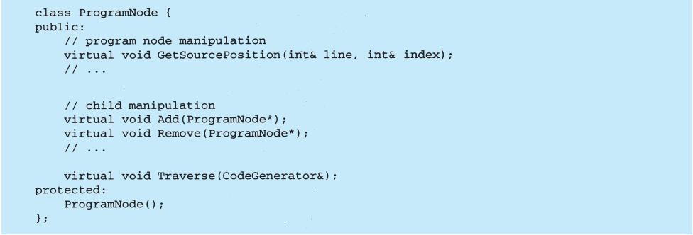 程序设计语言的选择非常重要,它将影响人们理解问题的出发点。我们的设计模式采用了Smalltalk和C++的语言特性,这个选择实际上决定了哪些机制可以方便地实现,而哪些则不能。若我们采用过程式语言,可能就要包括诸如“继承”“封装”和“多态”的设计模式。相应地,一些特殊的面向对象语言可以直接支持我们的某些模式,例如:CLOS支持多方法(multi-method)概念,这就减少了Visitor模式的必要性。事实上,Smalltalk和C++已有足够的差别来说明对某些模式一种语言比另一种语言表述起来更容易一些(参见5.4节Iterator模式)。
