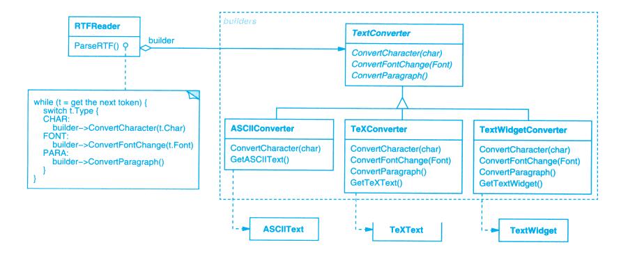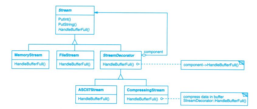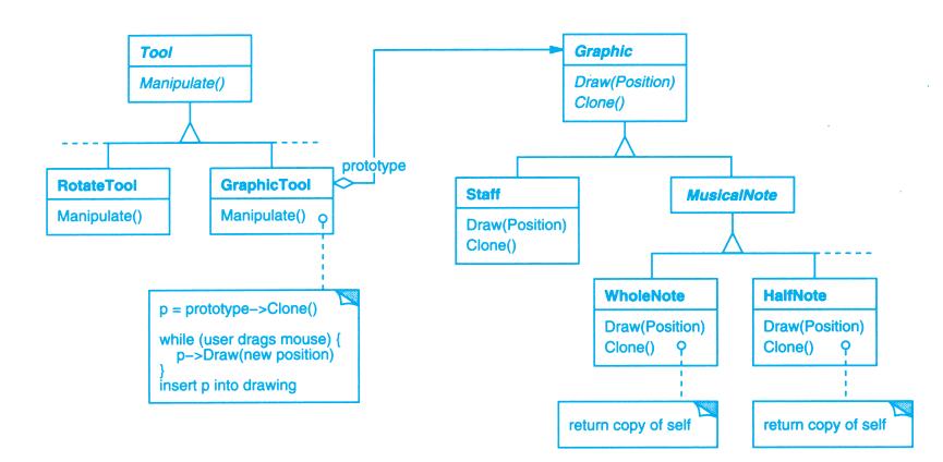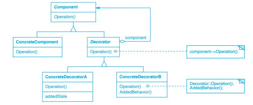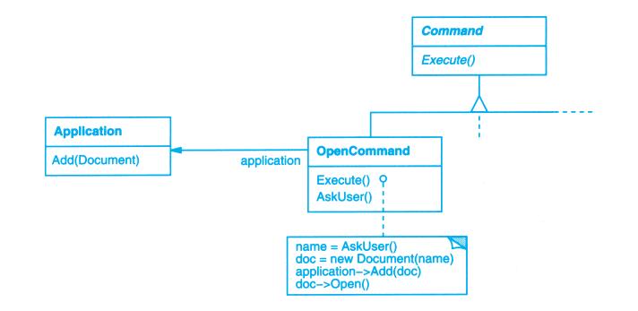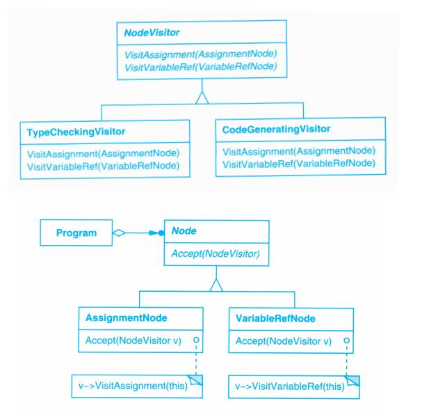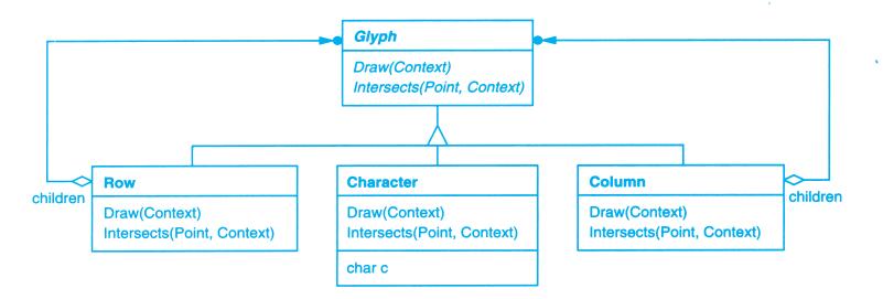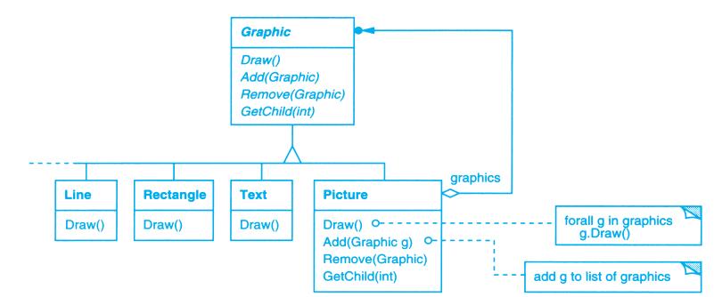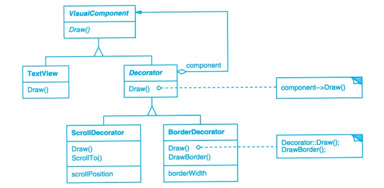 每个设计模式至少包含一个类图,需要时也使用其他图形表示来补充说明。类图和对象图是基于OMT(Object Modeling Technique)[RBP+91,Rum94]的[1]。交互图来自于Objectory[JCJO92]和Booch方法。