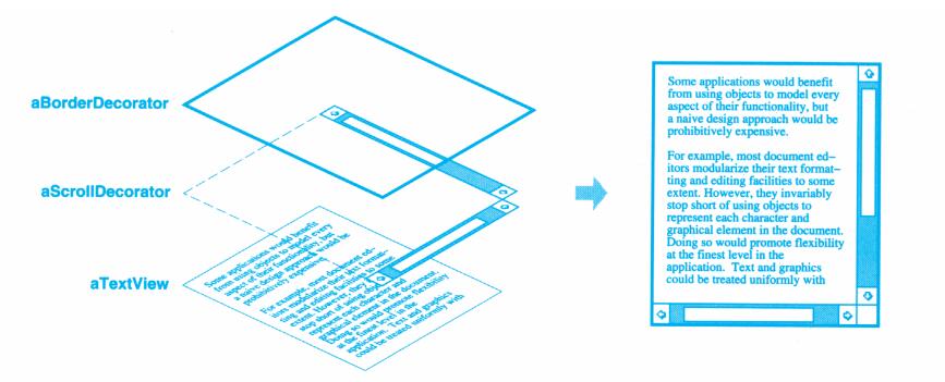 以下类比可以帮助说明这一点。小说家和剧本作家很少从头开始设计剧情。他们总是沿袭一些业已存在的模式,像“悲剧性英雄”模式(《麦克白》《哈姆雷特》等)或“浪漫小说”模式(存在着无数浪漫小说)。同样,面向对象设计者也沿袭一些模式,像“用对象表示状态”和“修饰对象以便你能容易地添加/删除属性”等。一旦懂得了模式,许多设计决策自然而然就产生了。