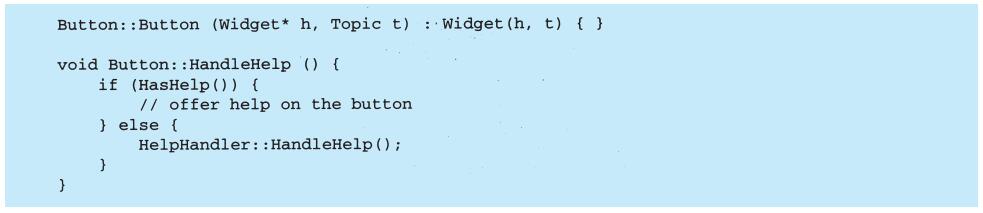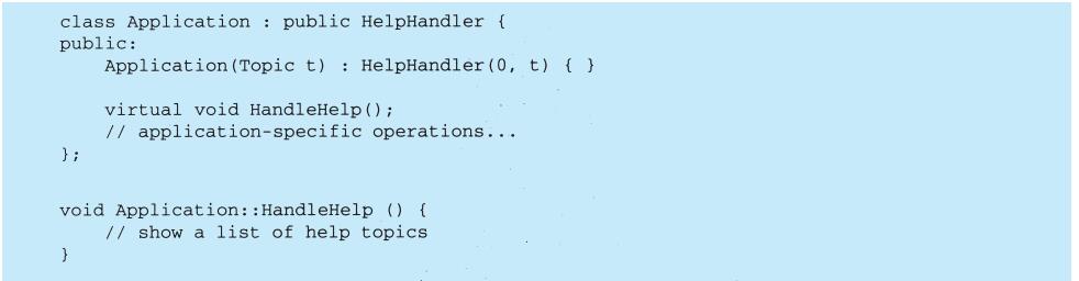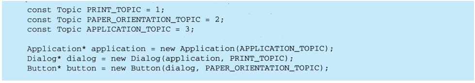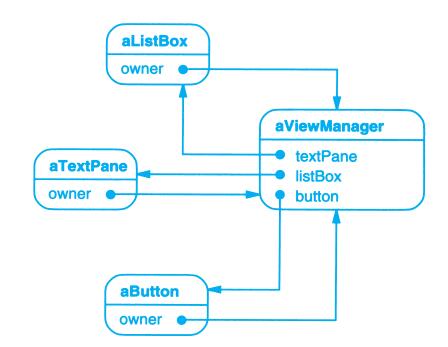 表面上看,这个例子反映了将视图和模型分离的设计,然而这个设计还可用于解决更一般的问题:将对象分离,使得一个对象的改变能够影响另一些对象,而这个对象并不需要知道那些被影响的对象的细节。这个更一般的设计被描述成Observer(5.7)模式。