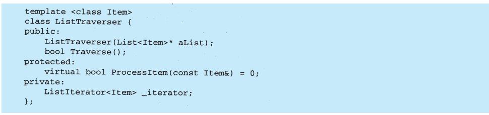 List模板类是一个用来存储对象序列的基本容器。List存放元素的值,其元素既可以是内置类型也可以是类的对象。例如,List<int>声明了一个整数序列。但在大多数模式中使用它来存储对象指针,比如List<Glyph*>。这样List类就可以用于异质元素列表。