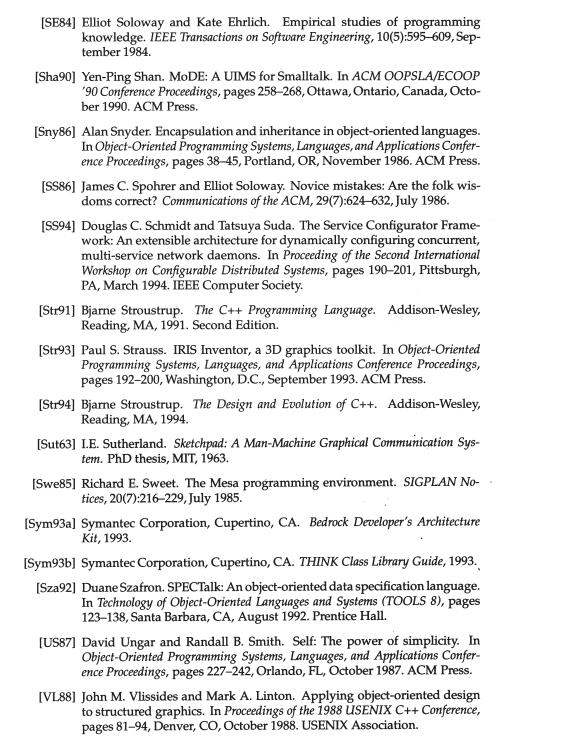 尽管本书涉及较多的内容,但书中讨论的设计模式仅仅包含了一个设计行家所知道的部分。书中没有讨论与并发、分布式或实时程序设计有关的模式,也没有收录面向特定应用领域的模式。本书并不准备告诉你怎样构造用户界面、怎样写设备驱动程序或怎样使用面向对象数据库,这些方面都有自己的模式,将这些模式分类编目也是件很有意义的事。
