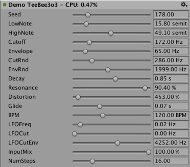 To try out some fun exercises, use the plug-in system to generate sound instead of processing it. For simple bassline and drum synthesizers for users who listen to acid trance, try simple clones of the main synths that defined this genre. Plugin_TeeBee.cpp and Plugin_TeeDee.cpp are simple synths that generate patterns with random notes, have parameters for tweaking the filters and envelopes in the synthesis engine. The state->dsptick parameter is read in the ProcessCallback to determine the position in a song. This counter is a global sample position, so you can divide it by the length of each note specified in samples and fire a note event to the synthesis engine whenever this division has a zero remainder. This way, all plugin effects stay in sync to the same sample-based clock. If you want to play a prerecorded piece of music with a known tempo through such an effect, use the timing info to apply tempo-synchronized filter effects or delays on the music.