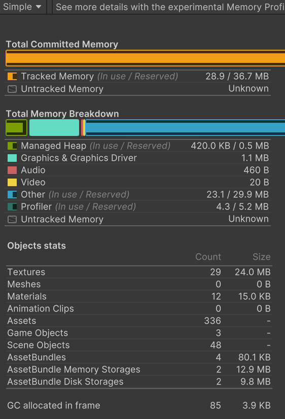 AssetBundle Memory Storage Bytes