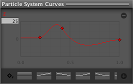 Curve 角速度可设定为在粒子的生命周期内变化。Inspector 底部会出现一个曲线编辑器,可用于控制粒子在整个生命周期内的速度变化情况(请参阅下图 A)。如果勾选了 Separate Axes 复选框,则可为每个 X、Y 和 Z 轴赋予曲线速度值。