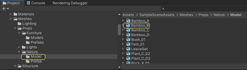 注意 :通过勾选窗口中 Mesh VG 所做的更改无法通过Undo撤销,被更改的Asset Importer会在Project Window中用高亮标记出来。