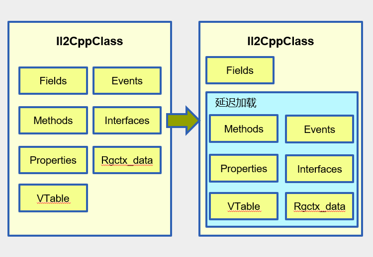 在之前的实现中,IL2CPP 在使用到某个类型时,会初始化这个类型完整的元数据,包括它的所有函数、接口、事件、属性、虚函数表等,并且一旦加载后就不会再释放。