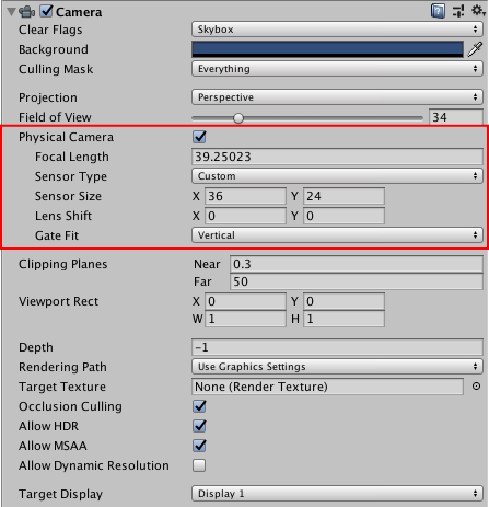 在 2018.2 版中添加了 Physical Camera 选项 NewIn20182