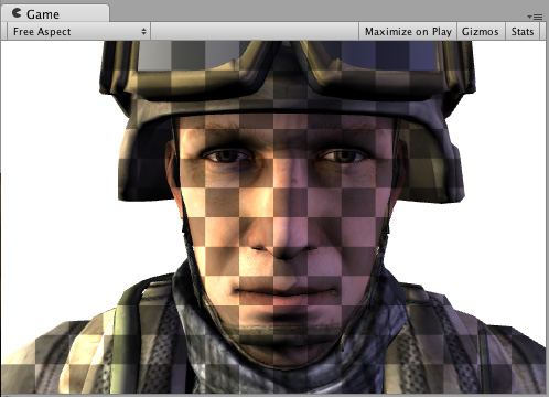 屏幕空间中的细节纹理对于士兵头部模型没有实际意义,但是在这里可用于说明如何使用内置的 screenPos 输入: