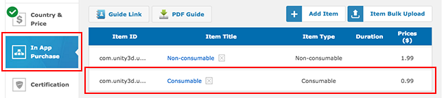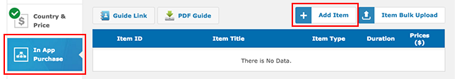 1.转至 In App Purchase__,然后选择 Add Item__。