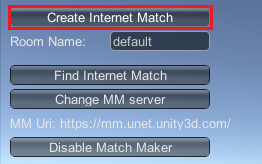 7.在托管应用程序上选择一个房间名称并单击 Create Internet Match。