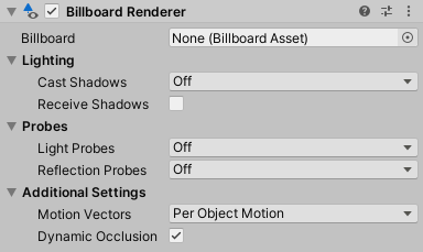 Lighting 部分包含指定此公告牌渲染器如何在 Unity 中与光照交互的属性。