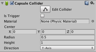 可以独立调整胶囊碰撞体的 RadiusHeight。胶囊碰撞体在角色控制器中用于模拟杆体,也可与其他碰撞体组合用于表现不寻常的形状。