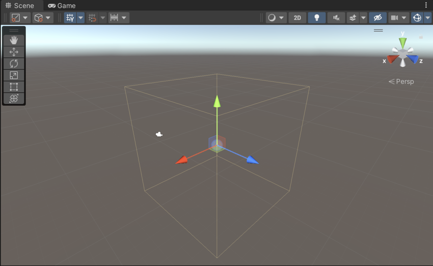 There are two buttons at the top of the Reflection Probe Inspector window that are used for editing the Size and Probe Origin properties directly within the Scene. With the left button (Size) selected, the probe’s zone of effect is shown in the scene as a yellow box shape with handles to adjust the box’s size.