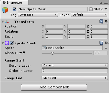 Range Start 和 Range End 可以基于精灵的 Sorting Layer 或 Order in Layer 来选择性遮蔽精灵。