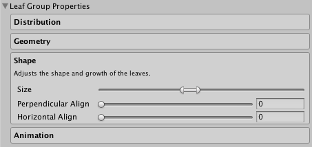 选择为此树叶组生成的几何体类型以及应用的材质。如果使用自定义网格,则会使用其材质。