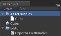 • 在 Project 视图中名为 Editor 的文件夹内创建一个名为 ExportAssetBundles.cs 的 C# 脚本文件。