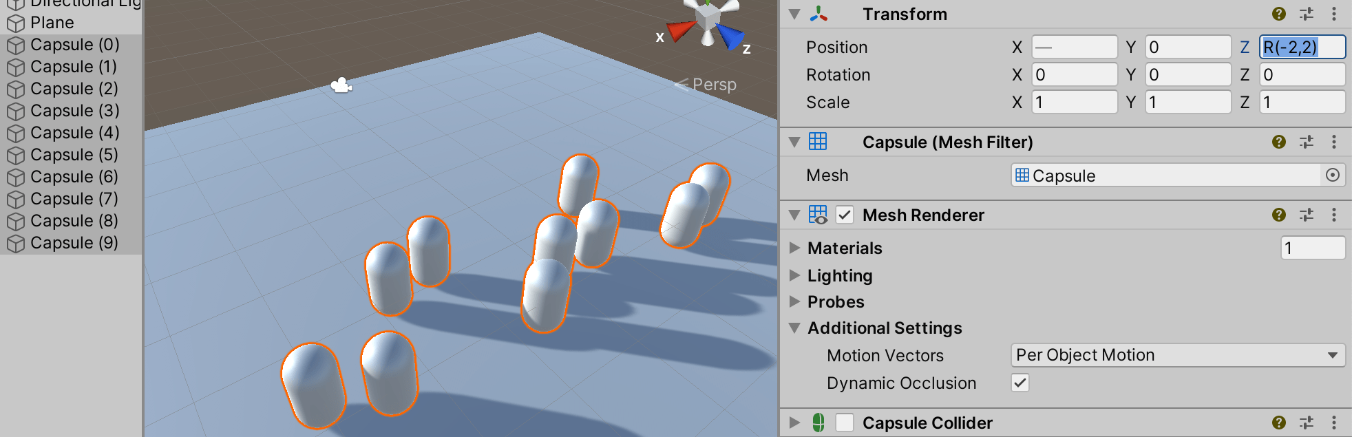 Entering R(-2,2) into Z coordinate sets the Z coordinate of the selected capsules to a random value between –2 and 2.