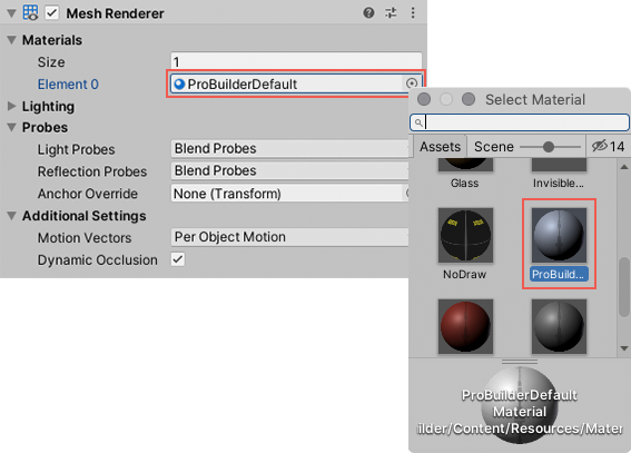 • 单击停靠点可选择它。Unity 将其颜色值显示在 Color 字段中。