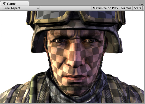 屏幕空间中的细节纹理对于士兵头部模型没有实际意义,但是在这里可用于说明如何使用内置的 screenPos 输入: