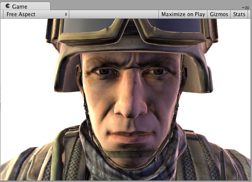 因为它将反射颜色指定为 __Emission__,所以我们得到了一个非常闪亮的士兵: