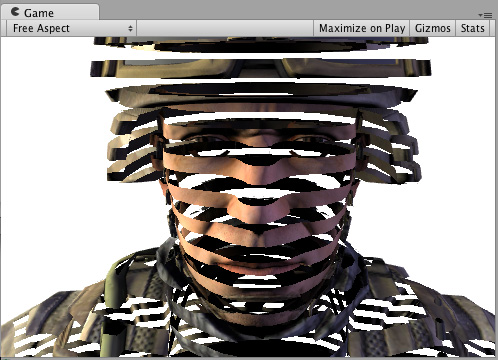 下面的着色器通过丢弃几乎水平的环形中的像素来对游戏对象“切片”。为实现此效果,它使用了基于像素世界位置的 Cg/HLSL 函数 clip()。我们将使用内置的表面着色器变量 worldPos