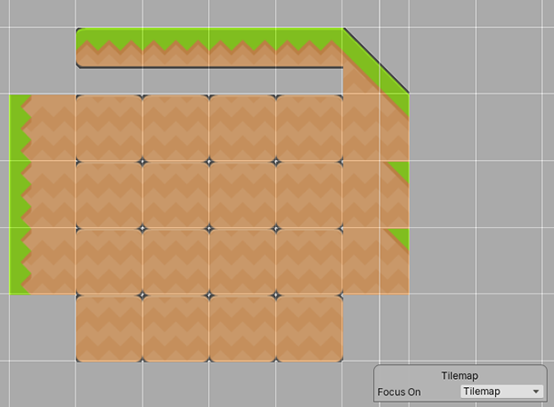 Grid 聚焦于父网格游戏对象及其所有子项。所有其他游戏对象都消失。选择此选项可将焦点集中在整个瓦片地图上,并将所有层作为一个整体。