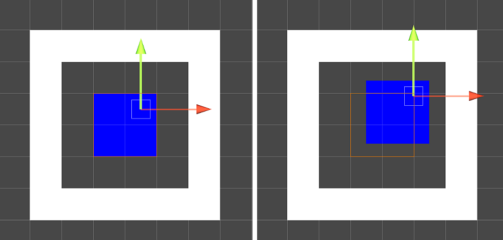 左:默认瓦片地图和选定单元格位置。右:选定单元格位置的偏移、旋转和缩放已修改。