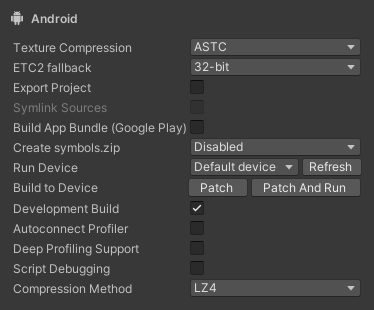 This section explains each Android Build Setting. For information on the rest of the Build Settings window, see Build Settings window.