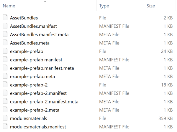 现在,如果重新构建 AssetBundle,则生成的输出包含单独的 modulesmaterials AssetBundle (359 KB),其中包含此材质及其关联的纹理。这会显著减小预制件的其他 AssetBundle 的大小(从上一个迭代的大约 380 KB 减小到大约 20 KB)。