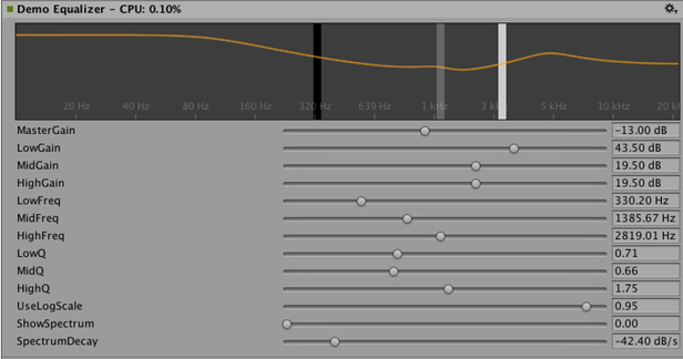 至此,我们还要指出的是,均衡器效果和多频段效果都是有意保持简单并且未进行优化,但我们认为它们是插件系统支持的更复杂 UI 的参考典范。显然还需要执行大量工作来进行特定于平台的相关优化,并执行大量参数调整以使其真正合理并以最具音乐性的方式响应,等等。我们也可能在某些时候在 Unity 中将上述其中某些效果作为内置插件实现,这样做只是为了方便增加 Unity 的标准插件库,但我们真诚希望读者也能接受挑战,制作一些非常棒的插件,说不定它们以后可能变为内置插件。;-)
