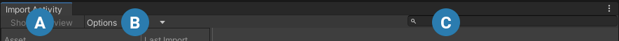The Import Activity window provides you with information about what happens when Unity imports your assets. You can use this information to identify which assets in your project were imported recently, how long each asset took to import, and why it was imported (or re-imported).