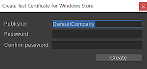 Click Create. The Create Test Certificate for Windows Store dialog window appears.