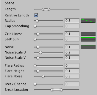 Crinkliness 调整树枝的褶皱/弯曲程度,使用曲线进行微调。