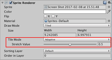 当 Tile Mode 设置为 Adaptive 时,重复部分仅在精灵的尺寸达到 Stretch Value 时才进行重复。