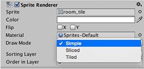 将 Draw Mode 设置为 Tiled 后,将出现另一个称为 Tile Mode 的属性。有关 Tile Mode 运作方式的更多信息,请参阅本页的下一部分。