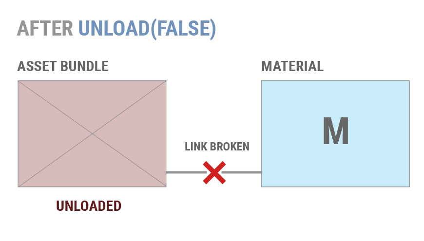 The biggest things to understand about AssetBundle management is when to call AssetBundle.Unload(bool) – or AssetBundle.UnloadAsync(bool) – and if you should pass true or false into the function call. Unload is a non-static function that will unload your AssetBundle by removing the AssetBundle header and other data structures from memory. The argument indicates whether to also unload all Objects instantiated from this AssetBundle.
