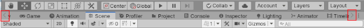 When you open more tabs than Unity can fit in a view’s tab area, small navigation arrows appear. Click them to scroll through the open tabs: