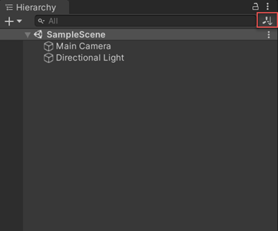 When selected, an icon appears in the Hierarchy window that allows you to toggle between Transform sorting (the default value) or Alphabetical sorting.