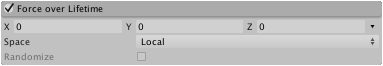 | Randomize | When using the Two Constants or Two Curves modes, this causes a new force direction to be chosen on each frame within the defined ranges. This causes more turbulent, erratic movement. |