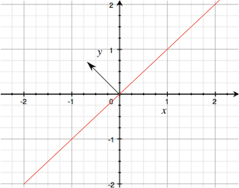In the previous image a plane is represented as a diagonal red line with the equation x = y passing through the origin point <0,0,0> in world space. A second line representing a normal vector with a positive y component indicates which direction the plane faces.