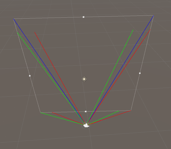 for (int i = 0; i < 4; i++) { var worldSpaceCorner = camera.transform.TransformVector(frustumCorners[i]); Debug.DrawRay(camera.transform.position, worldSpaceCorner, Color.red); } } }