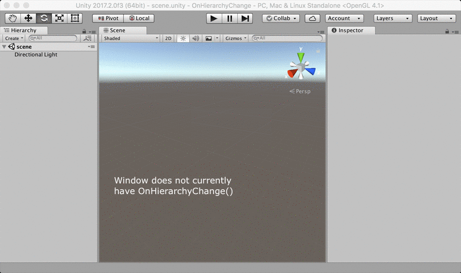 Additional resources: EditorApplication.hierarchyChange