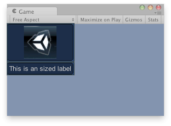 void OnGUI() { if (!tex) { Debug.LogError("Missing texture, assign a texture in the inspector"); } GUILayout.Box(tex); GUILayout.Box("This is a sized label"); } }
