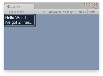 Text area in the Game View.